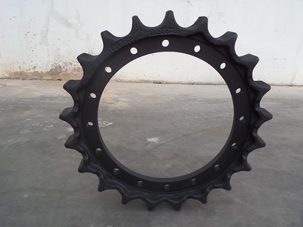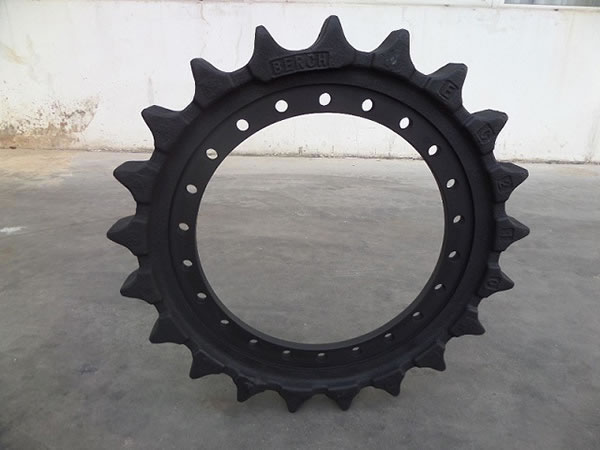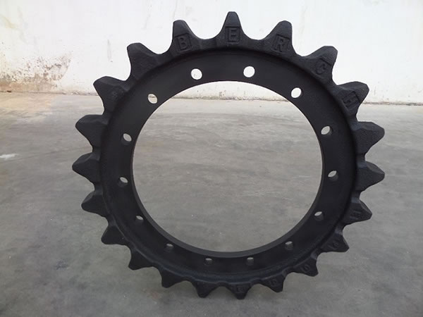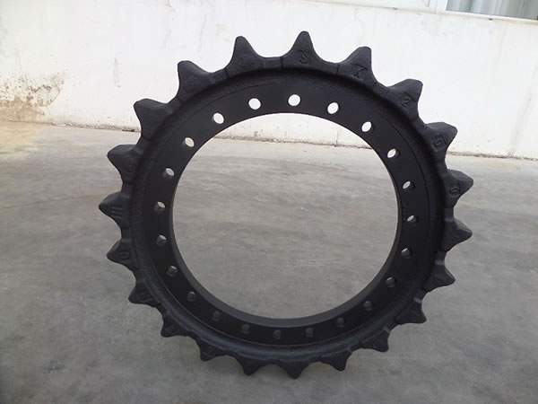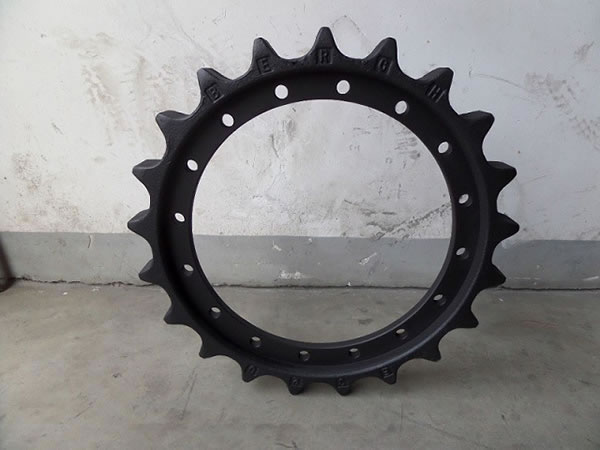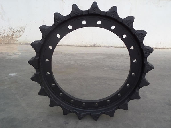 Las ruedas motrices y dientes son otros componentes del tren de rodaje de maquinaria pesada a oruga incluyendo excavadoras, topadoras, grúas y máquinas perforadoras.